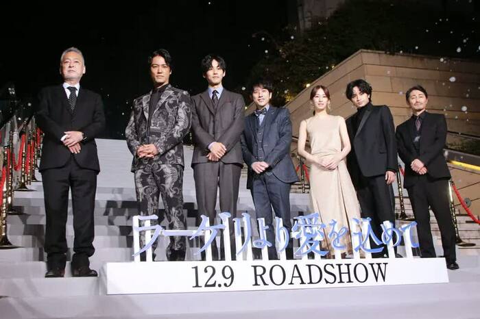 二宮和也さんが主演を務める映画「ラーゲリより愛を込めて」のスノーカーペットイベント&完成披露舞台挨拶が行われ、二宮さん、北川景子さん、松坂桃李さん、中島健人さん(Sexy Zone)、桐谷健太さん、安田顕さん、瀬々敬久監督が登壇しました。
