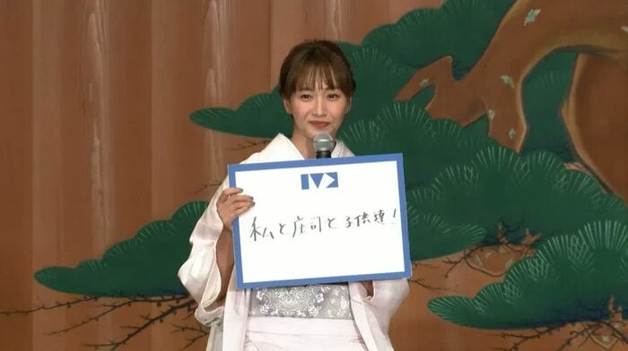 藤本さんは「私と庄司と子供達!」と書き、「これからは家族をメインに、笑顔を大切にしながら自分を素直に出せていけたらいいな」と微笑みました。