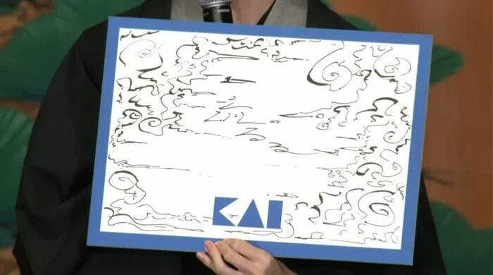 「これからの20年をどう切り開いていくか」という質問が飛ぶと、板垣さんはフリップに絵で表現。雲が描かれた絵の中には「流るる」と文字が施されました。