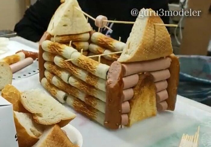 上の屋根を支えるために、三角形に切ったフランスパンもつなげます。