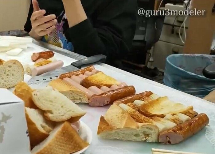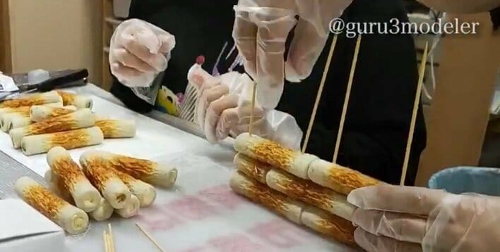 反対側も完成させた様子を見ると、ちくわではなく魚肉ソーセージバージョンに!