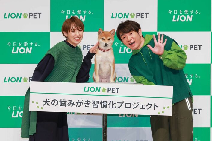 南さんと濱口さん夫婦が、11月8日に行われたライオン商事「ペットの歯みがき習慣化プロジェクト」新アクション発表会見に出席しました。