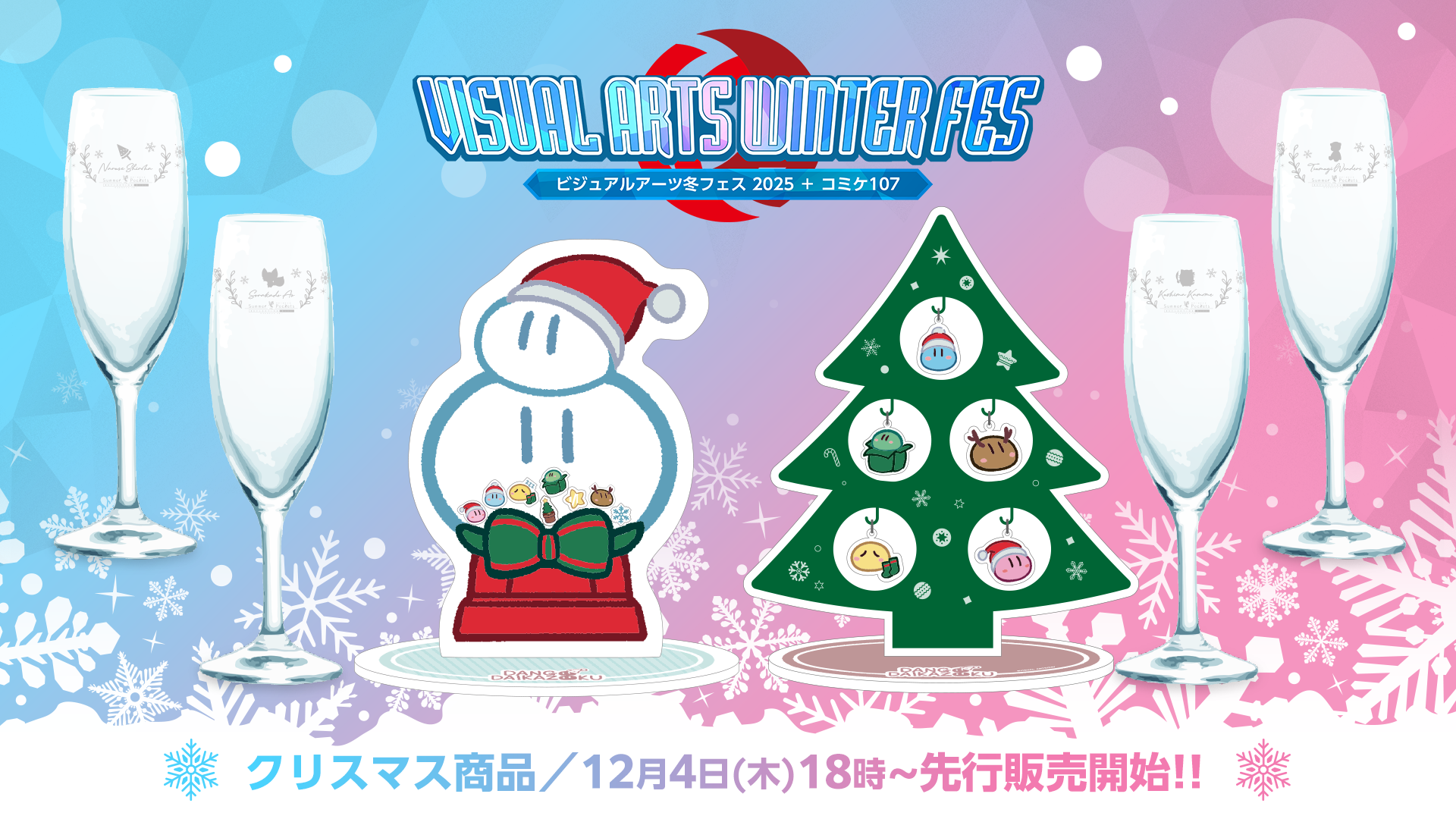 VA冬フェス2025では、コミックマーケット107の会場及びビジュアルアーツ公式オンラインストア『VA STORE』にてたくさんの新作グッズを販売いたします。また12月4日(木)18時からはクリスマスグッズの先行販売を実施しますので、特設サイト及び『VA STORE』をお見逃しなく!