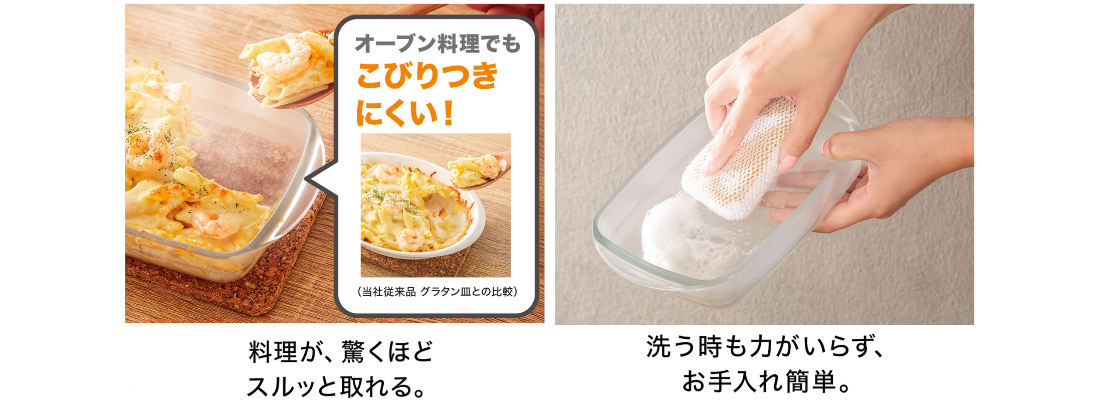 寒くなり、グラタンやドリア、ラザニアなど家庭で楽しめるオーブン料理が恋しい季節となりました。一方で従来のオーブンウェアには「こびりつきやすい」「洗い物が大変」「中身の調理状態が見えづらい」といった困り事がありました。