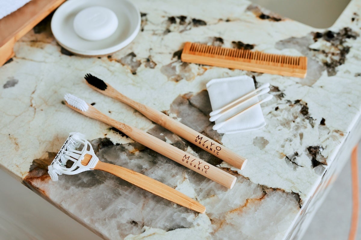 循環素材である竹を使用した歯ブラシ、ヘアコームやパッケージにも紙素材を使用したアメニティを展開中