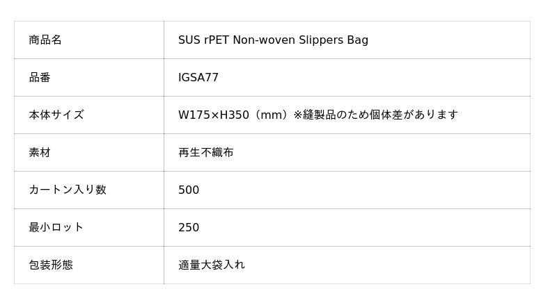・SUS rPET Non-woven Slippers Bag(スリッパ用 再生不織布巾着)