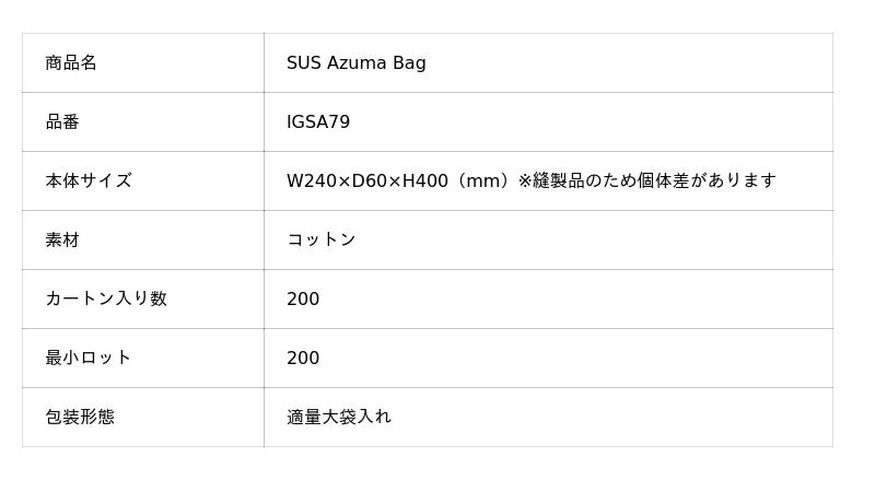 ◼︎新製品2 | コットン素材のナチュラルさがおしゃれ『SUS Azuma Bag(あずま袋)』