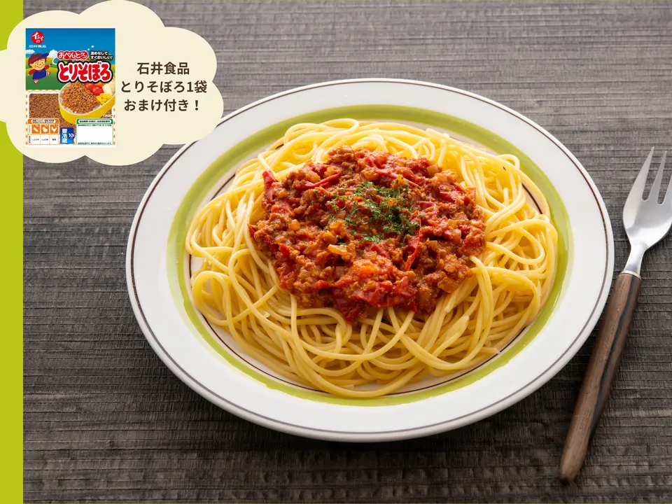 ・レシピ:とりそぼろを使ったミートソーススパゲッティ