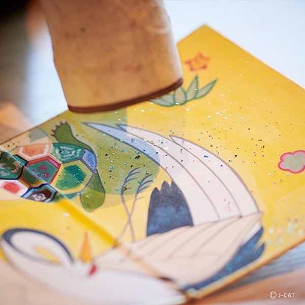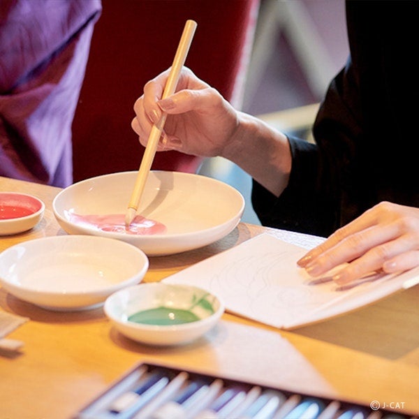 日本画家・高橋朋子氏と共に季節をテーマにした作品を創作するワークショップ。高橋氏が事前に描いた下書きに、華やかな胡粉や岩絵具を使って彩色し、繊細でありながら力強い色彩を加えていく特別な体験です。
