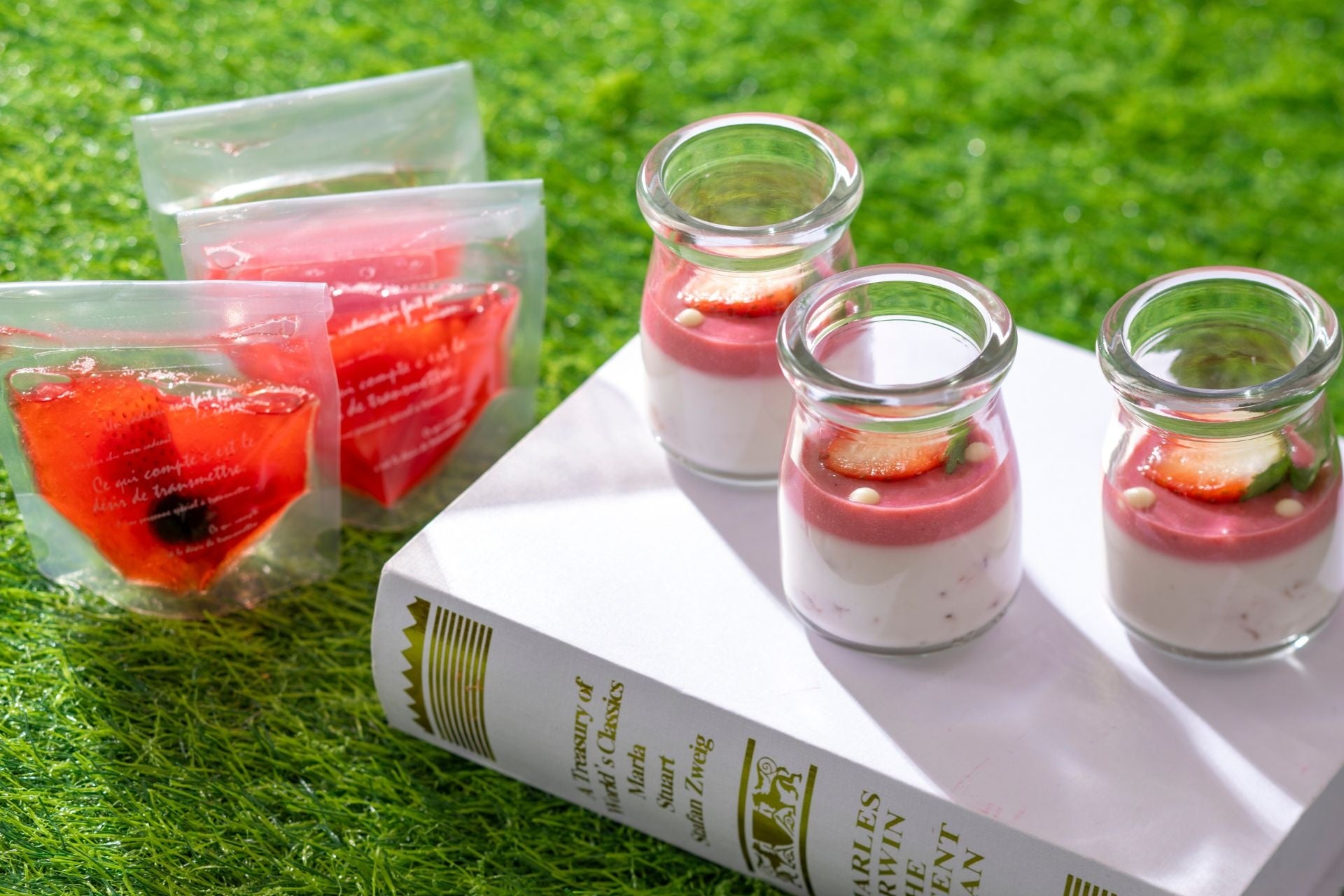 国産いちごをたっぷりと使ったショートケーキやパイなど、素朴な味わいを活かした王道スイーツに加え、ミルクボトルやドリンクパックを用いてピクニック風に仕立てたいちごミルクプリン、いちごジュレなどバリエーション豊かな約12種類のスイーツをご用意します。いちご本来の美味しさを丁寧に引き出しながら、食感や風味の違いを生かした多彩なスイーツに仕上げました。また、昨年開催時に続く「オリジンコウベ」とのコラボ企画として、今年は『パティスリー アグリコール』と『ラヴニュー』のシェフ監修のオリジナルスイーツも登場します。”いろんな種類をちょっとずつ愉しみたい”という声にお応えし、一口サイズで仕上げているのも特徴の一つです。