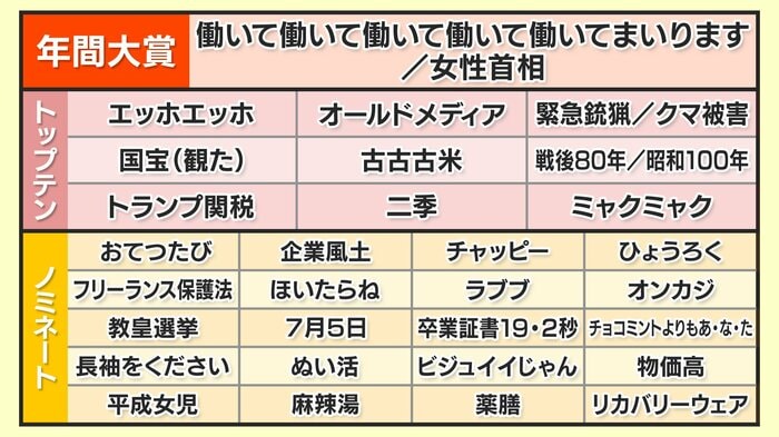 高市首相の他にも、「国宝」「麻辣湯」などさまざまな言葉が聞かれた2025年。