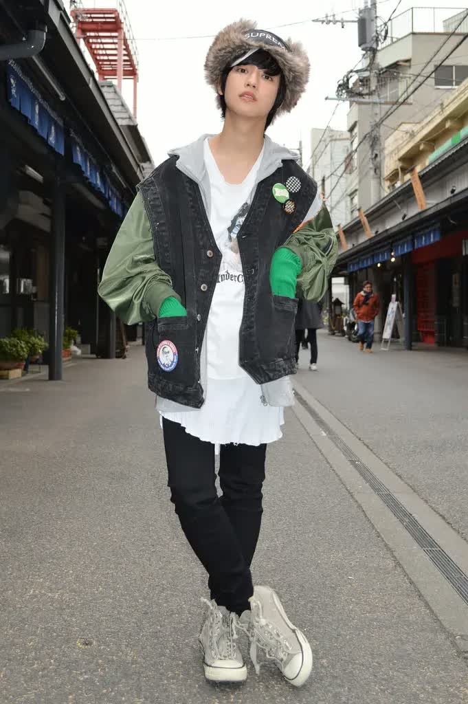 ジャケットは、スタイリストさんがリメイクしてくださったもので、ブラックデニムのベストに袖とパーカが付いているんです。パッと見て気に入って選ばせてもらいました。
