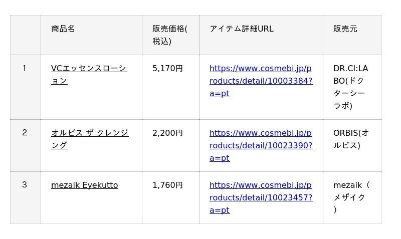 ・公式サイト :https://www.cosmebi.jp/?a=pt