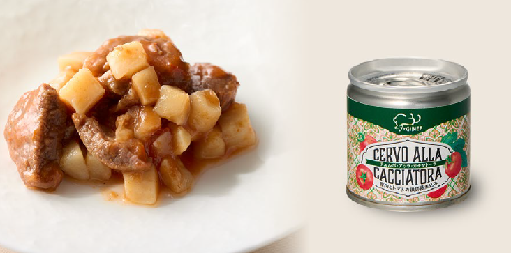 トマトの甘酸っぱさが鹿肉とじゃがいもに溶け込み、一体感のある味わい。とろみが旨みを包み込み、豊かな余韻を残す一缶。鹿肉を野菜の甘味とトマトの酸味がきいたソースとともに缶詰にすることで、軽くやわらかな食感に。じゃがいもをつけ合わせることで、おいしさとともに、栄養価もさらに高まりました。そのまま温めて味わうのはもちろん、好みのスパイスで風味を変えたり、スープやグラタンの具材としてアレンジしたりと、さまざまな楽しみ方が広がる一品です。