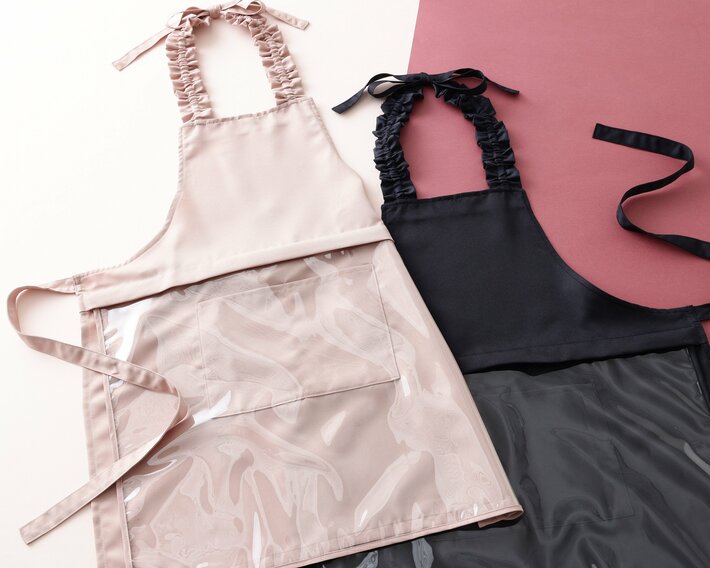 キッチンや洗面所、お風呂場など水が跳ねやすいシーンではビニールパーツを付けてしっかりガード。料理や来客時など見た目をすっきりさせたい時は、ビニールを外して通常のエプロンとして使える便利な切り替え設計です。濡れや汚れを気にせず家事に集中できるので、家事全体の効率アップや時短も期待できます。家中のさまざまな作業を1枚でカバーできる、忙しい毎日や大掃除で活躍する実用性の高いアイテムです。