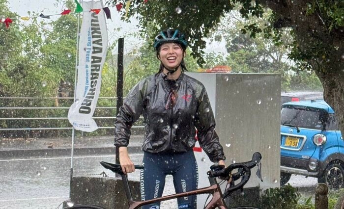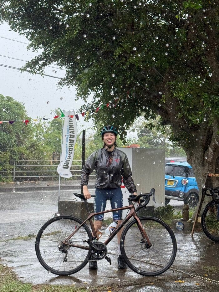 そんな荒野さんは11月30日、沖縄の石垣島で開催された「新城幸也サイクリングイベント2025」にゲストライダーとして参加。この日挑んだのは、89kmコース(獲得標高960m)というアップダウンの激しいコースでしたが、さらに追い討ちをかけるようにどしゃ降りの雨に降られてしまった荒野さん。