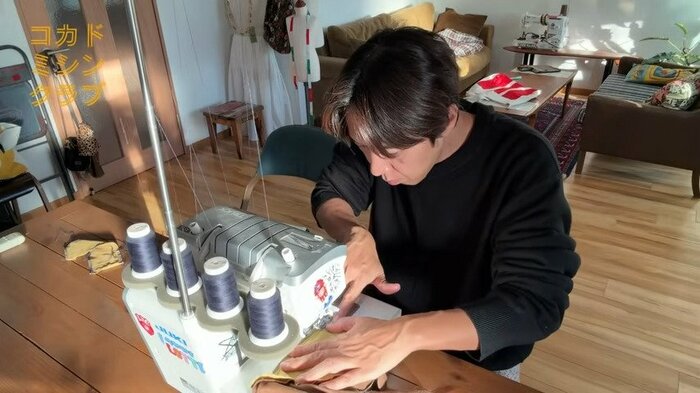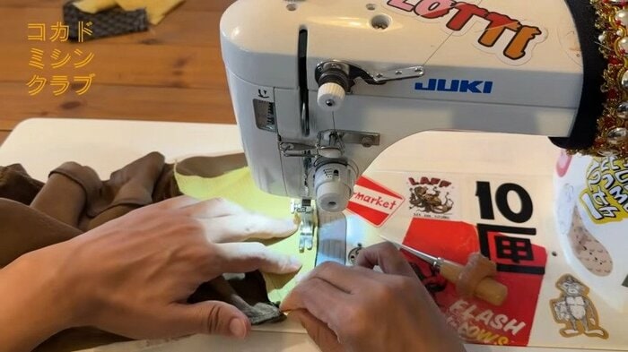 また数日後、両サイドに布を縫い付けたところで、ロックミシンでの作業に取りかかります。