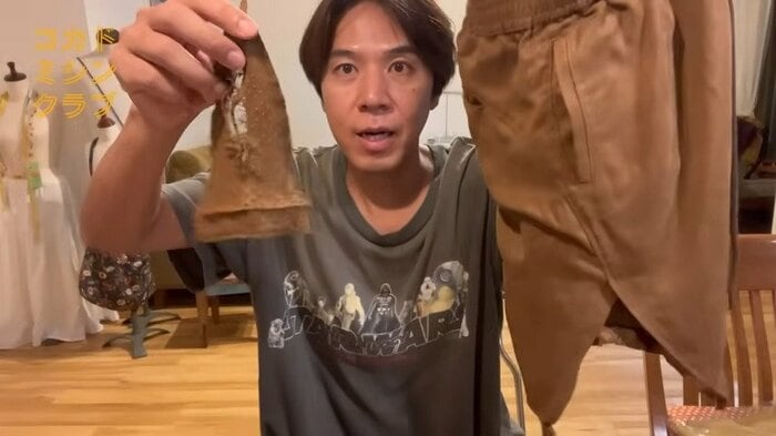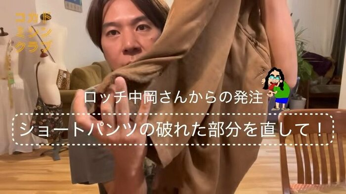 ジャケットやトランクス、バッグなど、得意のミシンで何でも作ってしまうコカドさんが、今回は「ロッチ中岡のショートパンツを修理&リメイク」と題して、動画を公開しました。