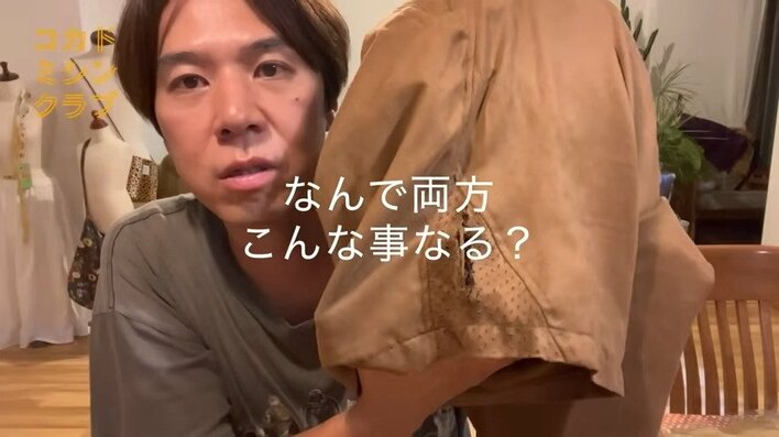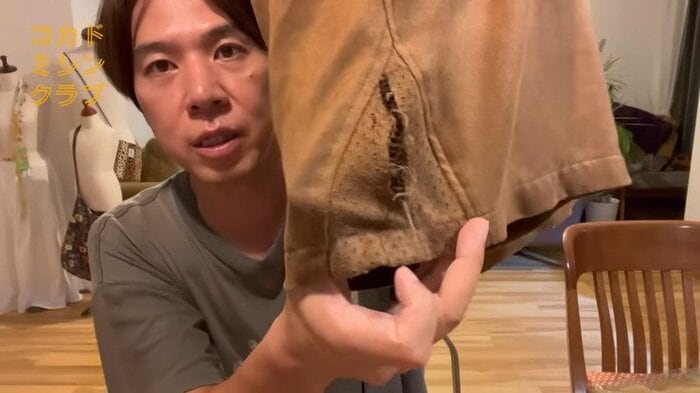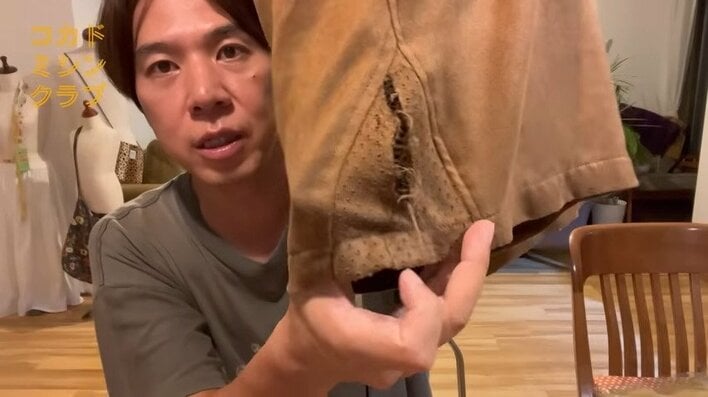 相方・中岡創一さんの破けてしまったショートパンツをリメイクする動画を公開しました。