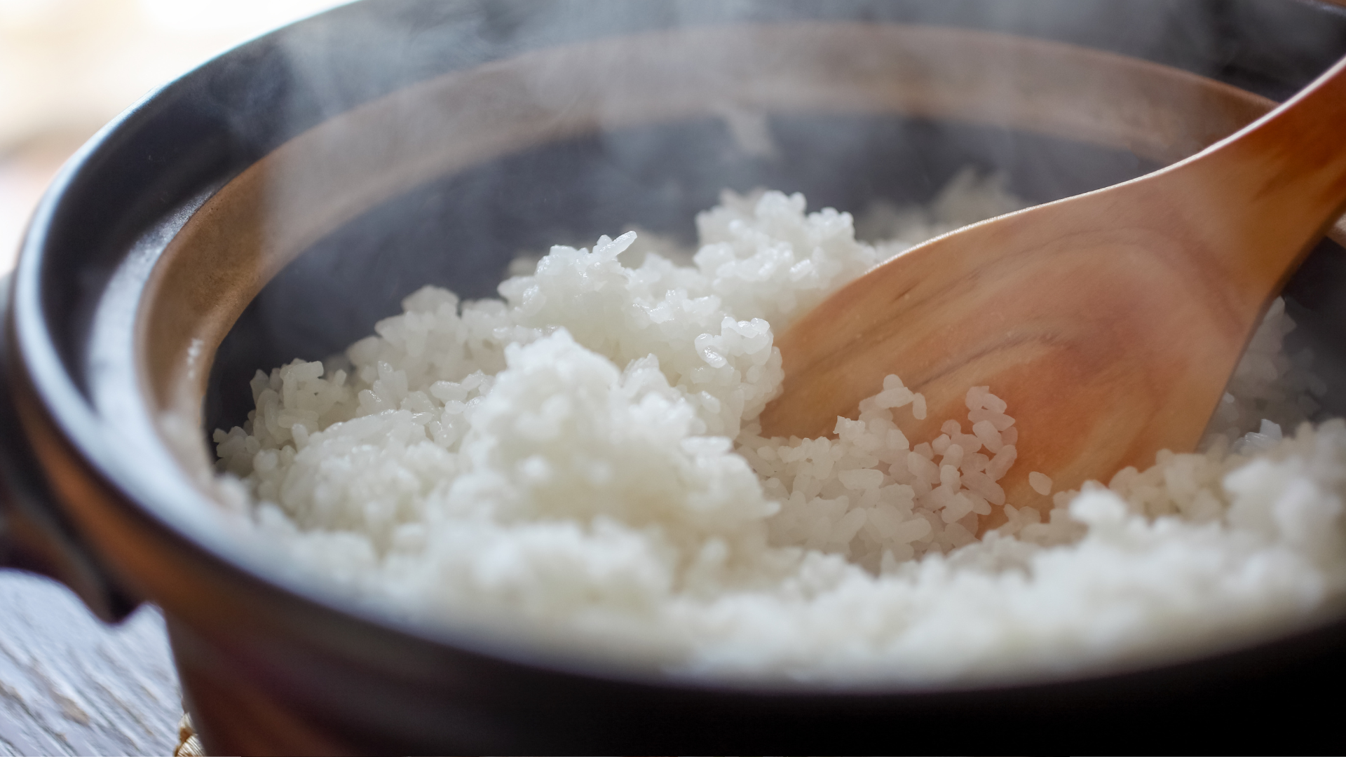 八代目儀兵衛が選び抜いたお米を、一人ひとりのために土鍋で丁寧に炊き上げることで、和牛の旨みと最も相性の良い状態に仕上げています。