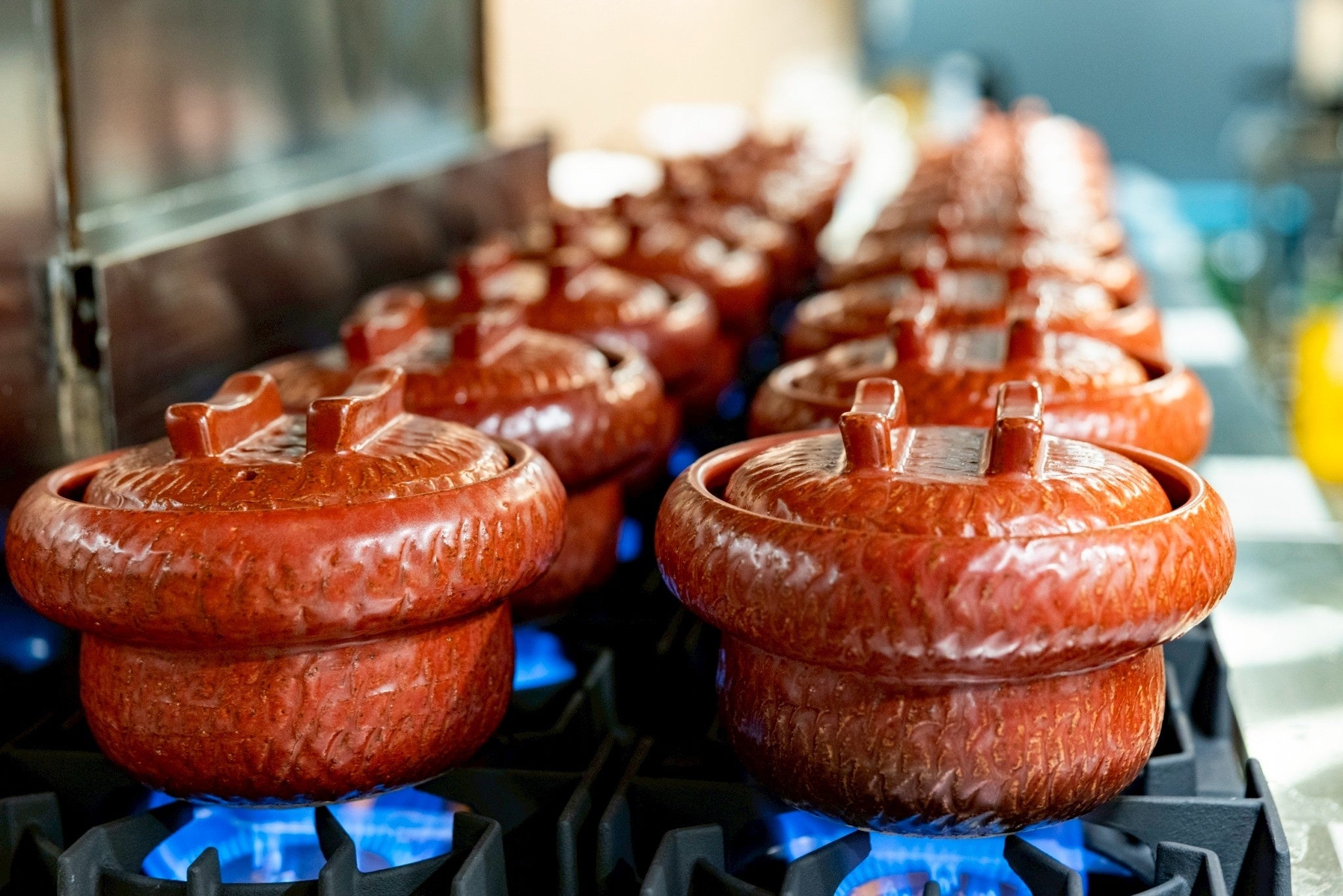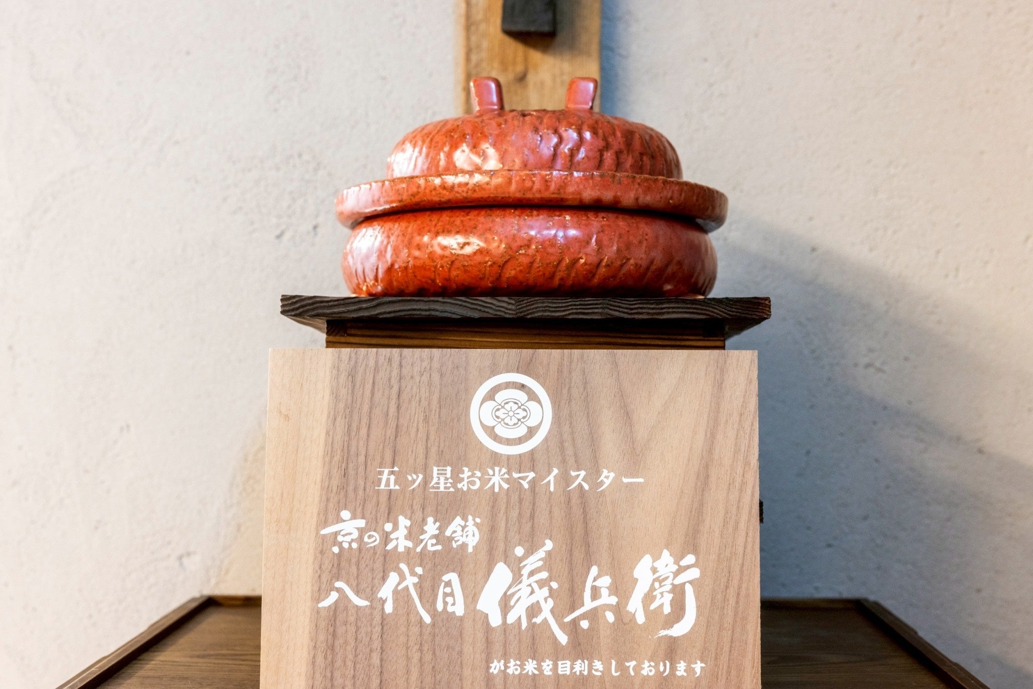八代目儀兵衛が厳選したお米を土鍋でふっくら炊き上げ、3種の自家製ソースとともにお楽しみいただけます。
