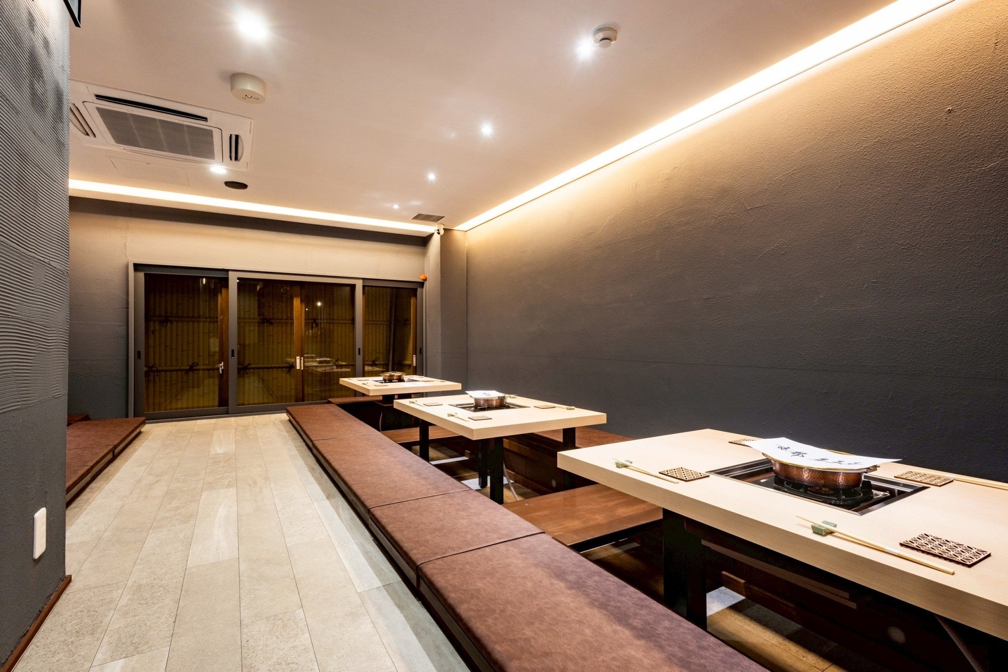 また、神戸牛の上品な脂と相性のよい日本酒やワインも多数ご用意。国内外のお客様に、京都の真ん中で“すき焼き体験の最高到達点”をご堪能いただける空間を目指しております。