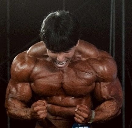 オリンピアアマチュアの2日後には、「僕はサイドチェスト」とつづり、完璧なまでのサイドチェストを披露。肩は大砲の弾のように丸く、そこから伸びる硬くて太い上腕二頭筋と三頭筋はまるでしめ縄のように…胸板は異常な厚みと立体感でまるで鋼鉄の鎧を纏っているかのよう。