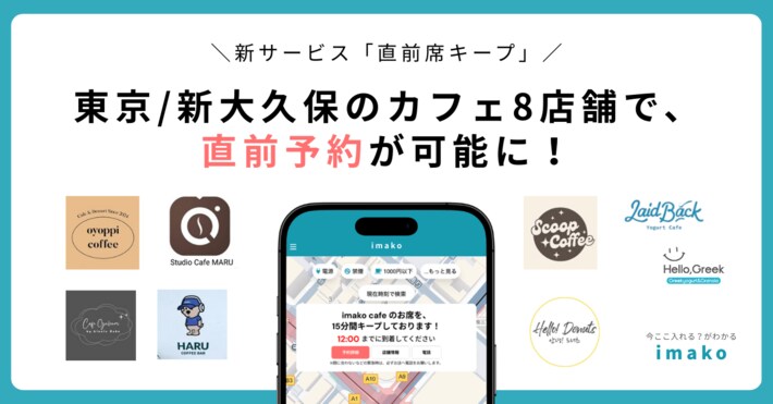 株式会社imako(本社:東京都渋谷区、代表取締役:浜田真衣)が運営するカフェ混雑情報マップ「imako(いまこ)」(https://app.imakoapp.com/?&utm_source=prtimes&utm_medium=shinokubo )は、新大久保エリアの人気韓国カフェ8店舗で、マップ上から気になるカフェの席を15分間確保できる新サービス「直前席キープ」の導入を開始したことをお知らせします。
