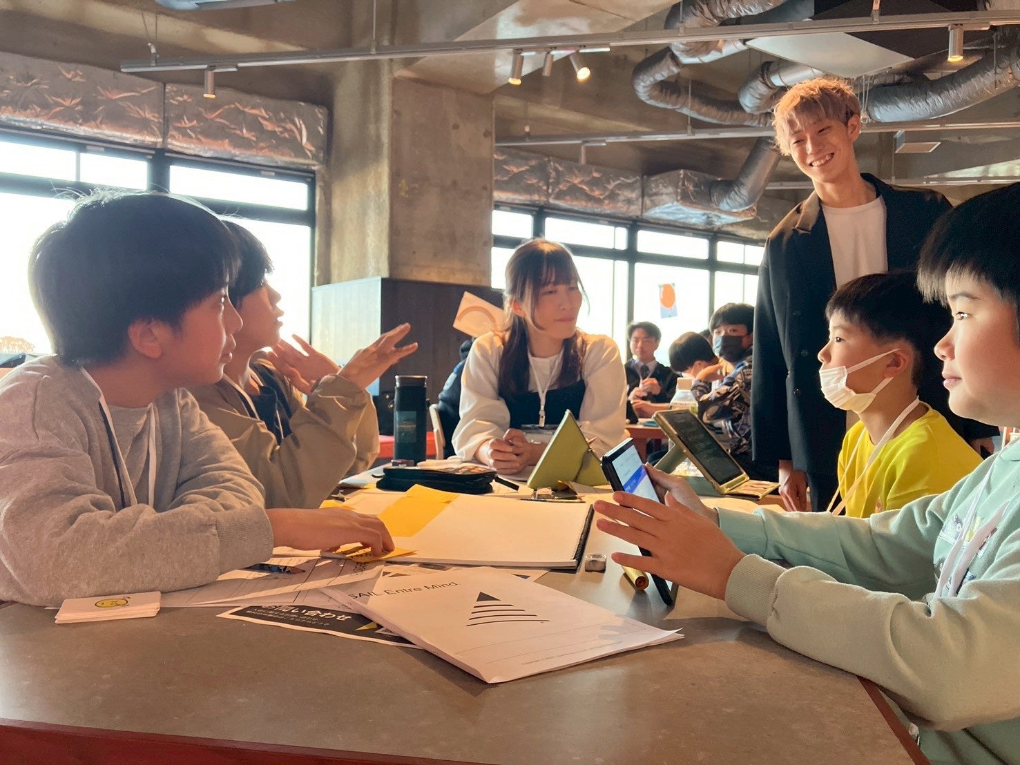 地域の大人メンターと一緒にビジネスアイデアを練る場面