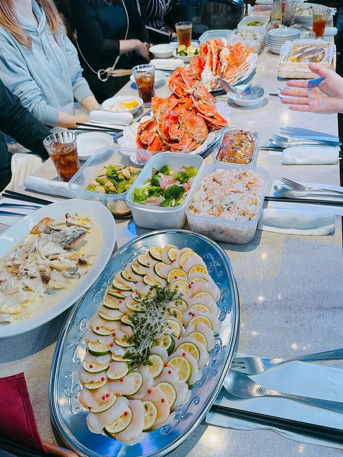 今回の投稿では、「少し早めのチームMinayo忘年会のお料理」とつづり、豪華な食事を披露しています。