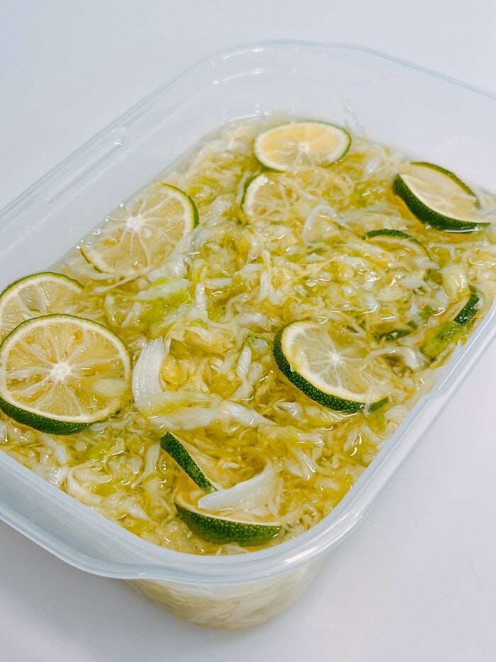 また、保存容器にはシャキシャキ食感がクセになりそうな「キャベツとすだちのコールスロー」や…。