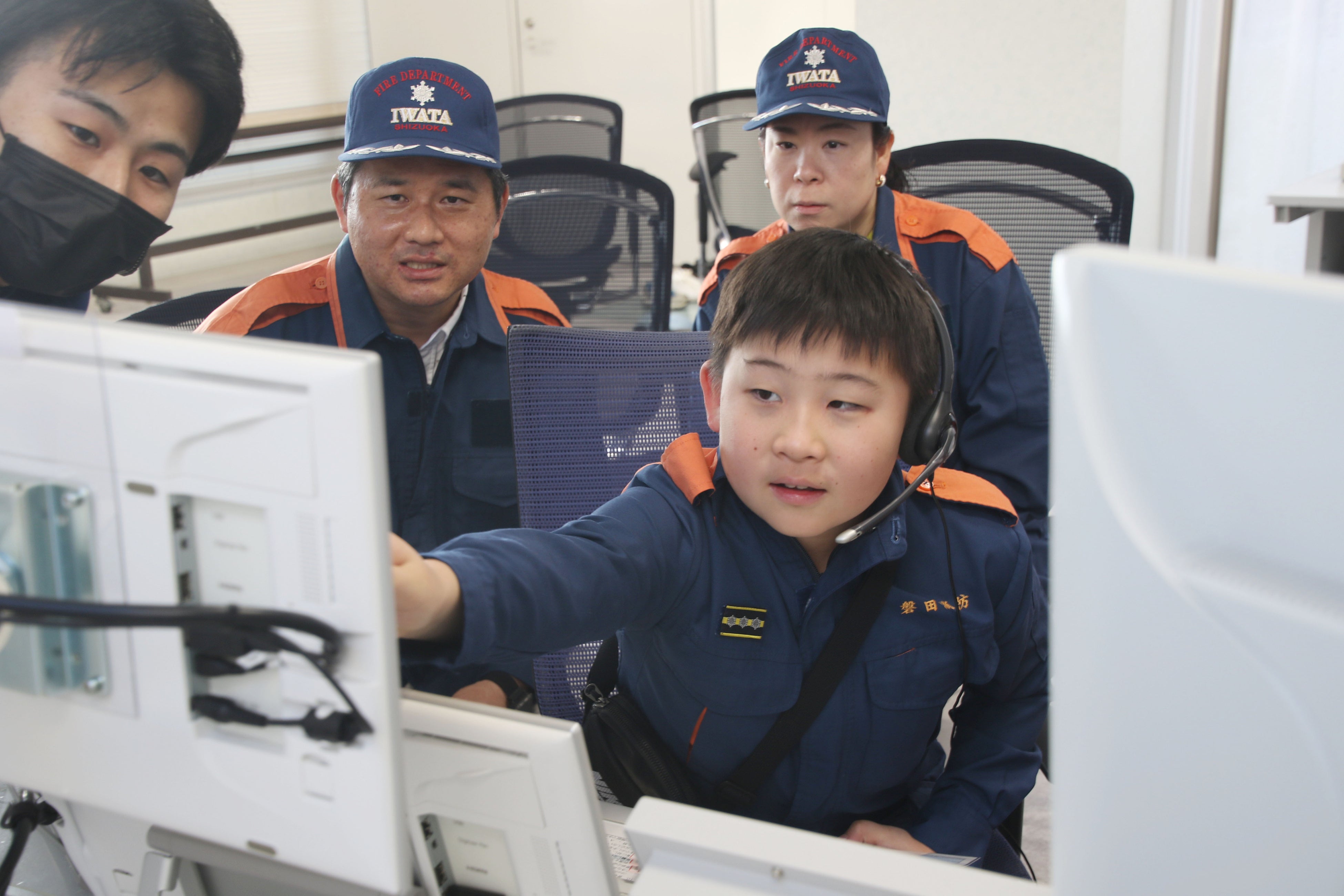 磐田市には5市1町からの119番を受け付け、約46万人の生命と財産を守る「中東遠消防指令センター」があります。ここでは実際に使用している操作卓と同様の物を使用し、火災通報の対応を体験しました。通報者から必要な情報を正確に聞き取り、災害の程度に応じた適切な車両の出動要請をしました。