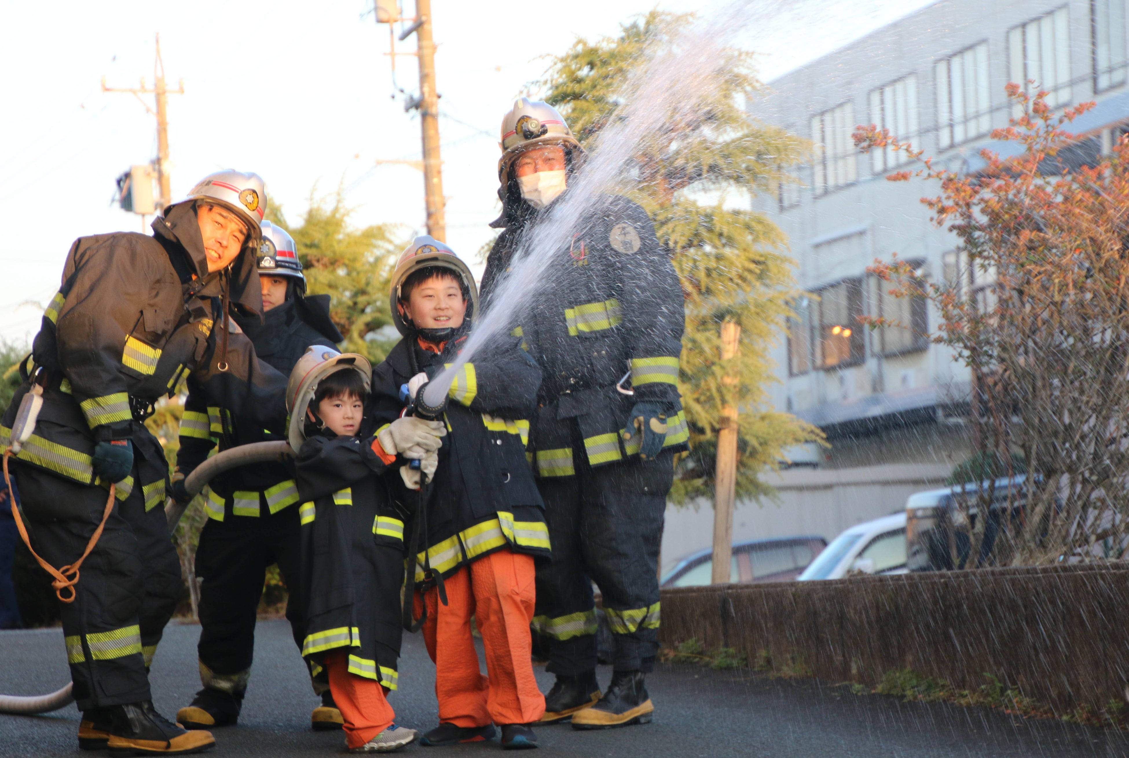 体験したお子さんは「将来の夢はまだ決まっていないけど、今回の体験を終えて消防士もいいな、と思いました」「はしご車のカゴに乗ったのが1番楽しかったです。高くて少し怖かったけど、遠くまで見渡すことができました」と話しました。