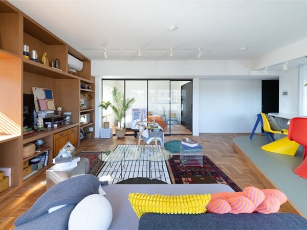 「中古マンションをリノベーションし、次の住まい手に繋いでいく」というINITIA&Renovationの事業特徴はPASS THE BATONのコンセプトに重なる部分が多く、強く賛同したことからこのプロジェクトは始まりました。本企画に先立ち、今年3月に開催した『PASS THE BATON MARKET Vol.18』に不動産会社として初出展。コスモスイニシアは昨年、創業50周年を迎え、その節目に当社が創業25周年の際に分譲した『コスモ世田谷』を題材に、「自分の住まいを、自分にとって一番豊かな場所にするためにはどうすればよいか」という考えのもと、今回の共同プロデュースに至りました。60年代の団地に端を発した日本の集合住宅は、長らく合理性や効率性が優先される設計が中心だといわれてきました。その一例として、田の字型の間取りや、他の空間と連続性がない閉じた玄関、動線を分断する開き戸といった特徴が、既存フォーマットとして多くの集合住宅に存在し、現在にもそのフォーマットが受け継がれています。今回、PASS THE BATONは、「当たり前」となっていたフォーマットや建材を、もう一度見直し、見立て直し、機能で分けられていた間取りを、より自由に曖昧にすることで、住まい方の選択肢をひとつ増やすことを試みます。