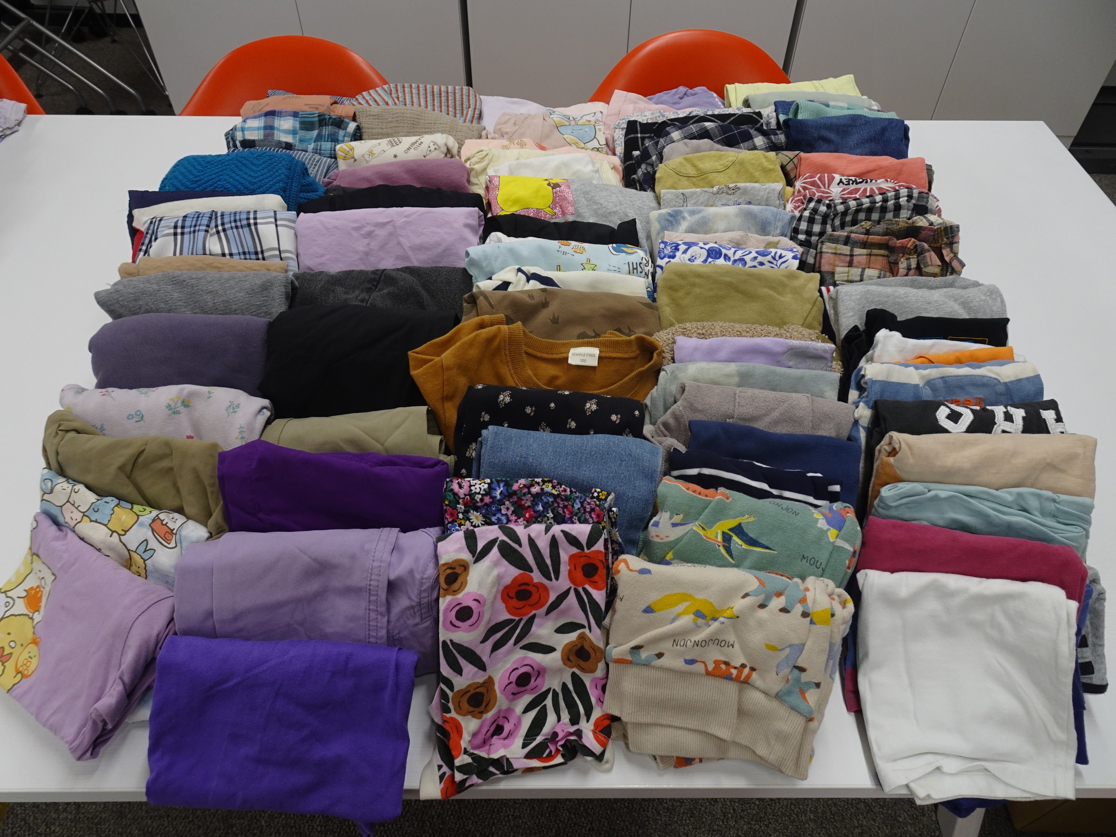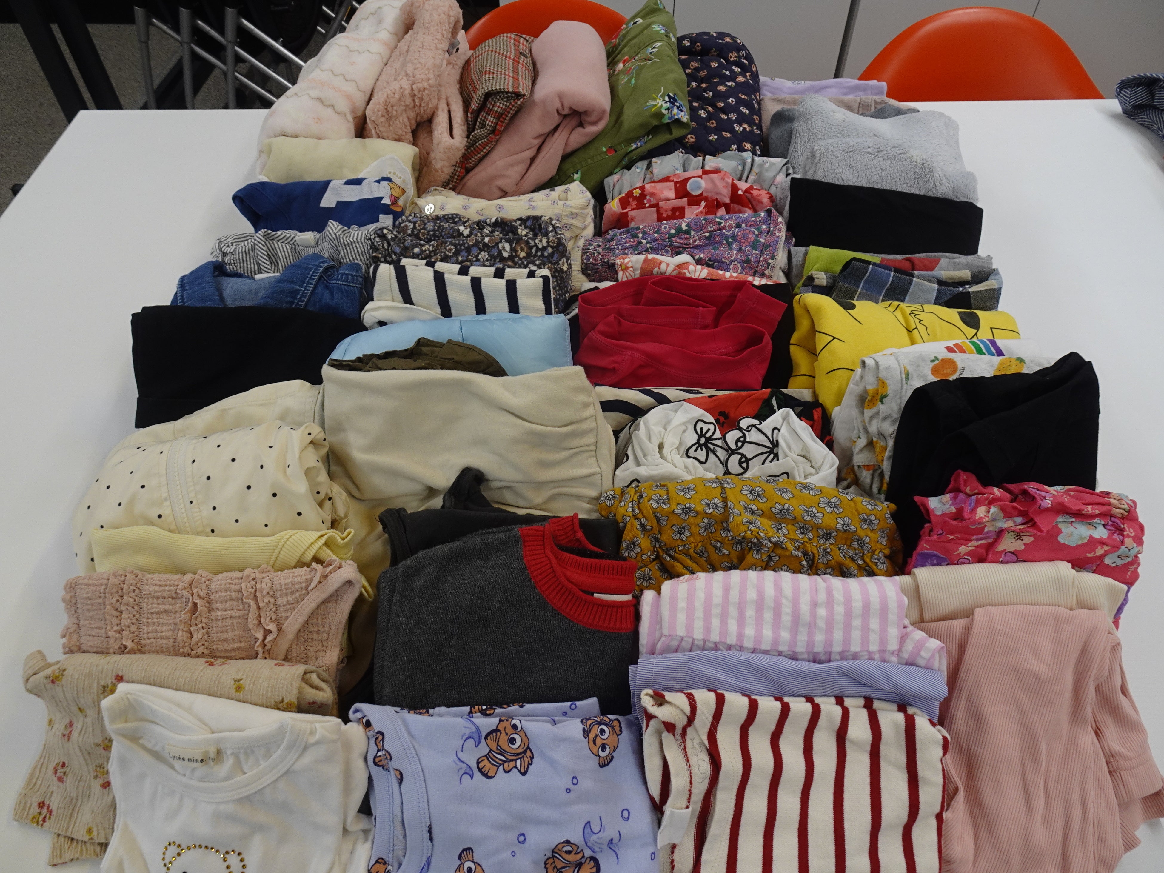 この度、アドバンスト・メディアの本社があるサンシャインシティ様にお声がけいただき、豊島区の子育て家庭の皆様にお届けする子ども服・雑貨・絵本を社内で募り、約200点の物品が集まりました。