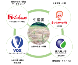 ハウス食品グループは、杉本商店、南九州大学、生産者と共同で、宮崎県高千穂郷・熊本県奥阿蘇にて、生産者拡大とブランド化に向けた山椒の「産地形成プロジェクト」を進めています。