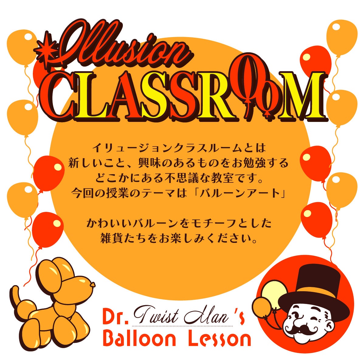 イリュージョンクラスルームとは、新しいこと、興味のあるものをお勉強する、どこかにある不思議な教室です。今回の授業のテーマは「バルーンアート」。