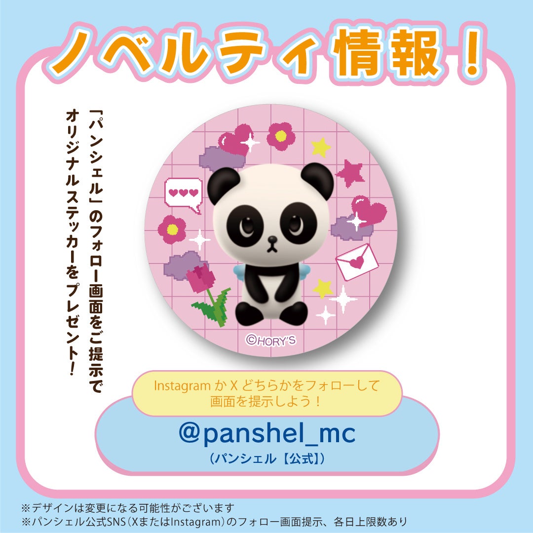 パンダの天使のおとこのこ「パンシェル」の公式SNSのフォロー画面をご提示いただいた方に、「オリジナルステッカー」を1点プレゼントいたします。