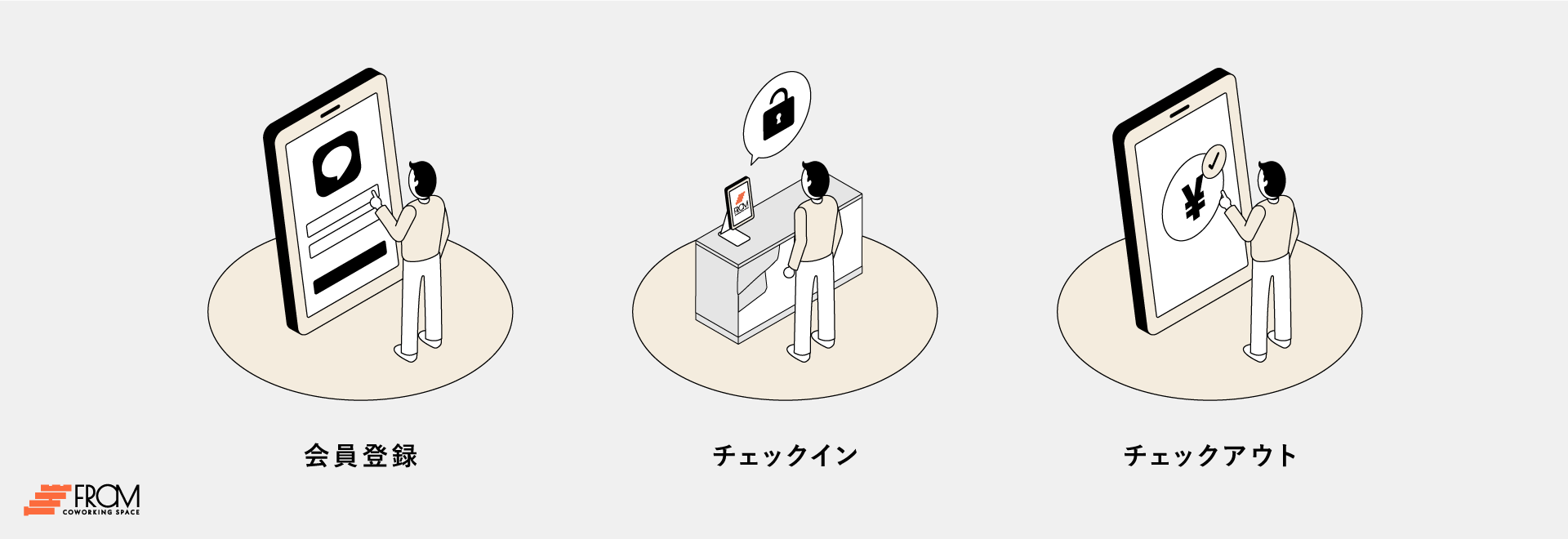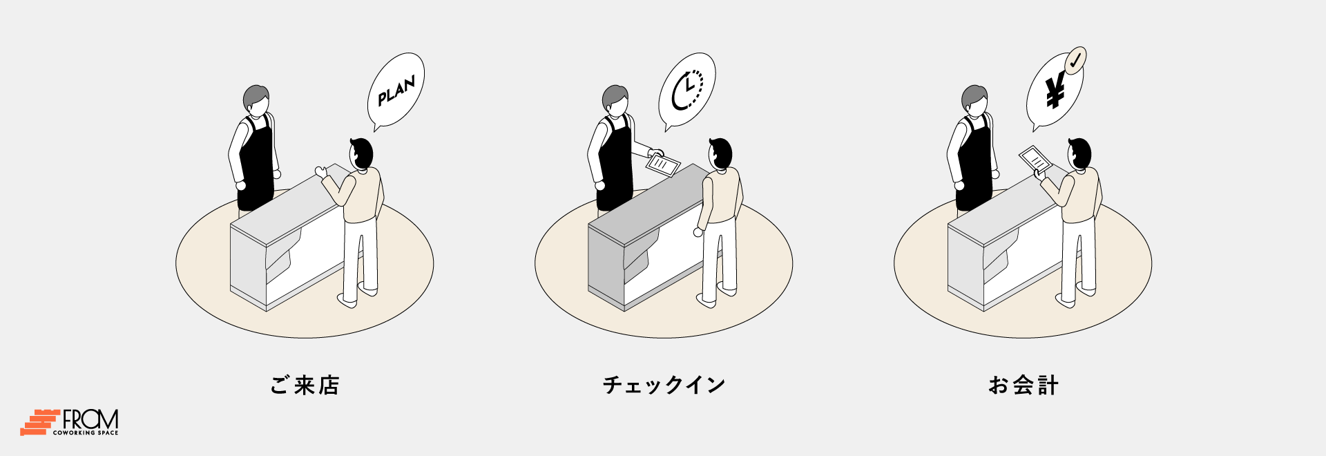 - お会計(受付カウンターに番号札をお持ちください。ご利用時間、プランに応じてお会計いたします。)