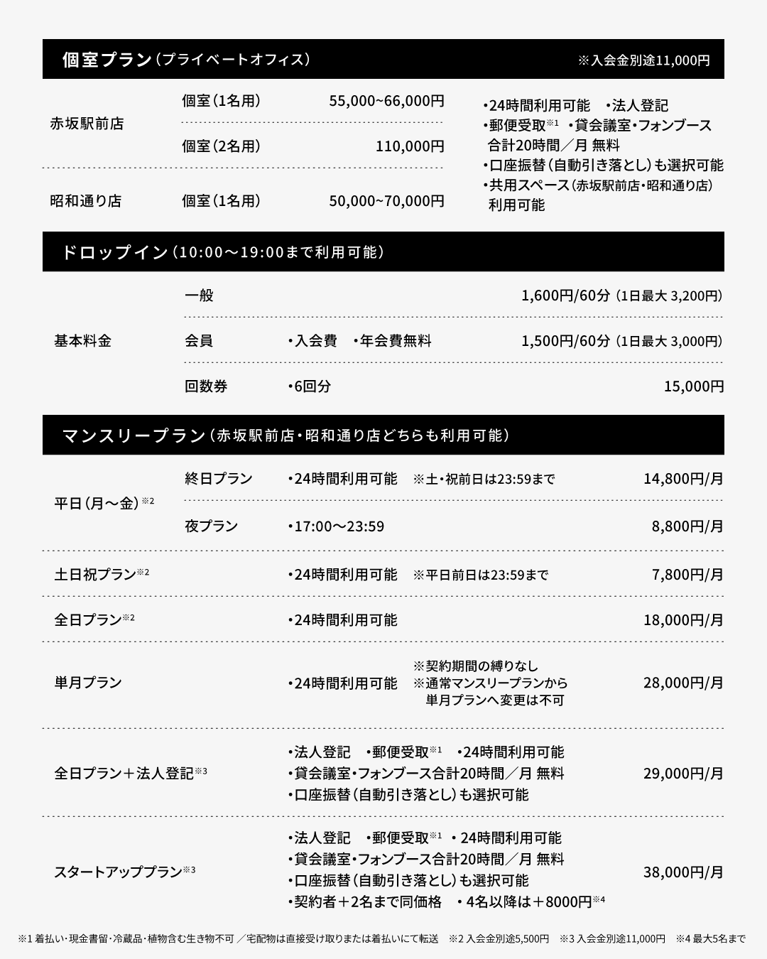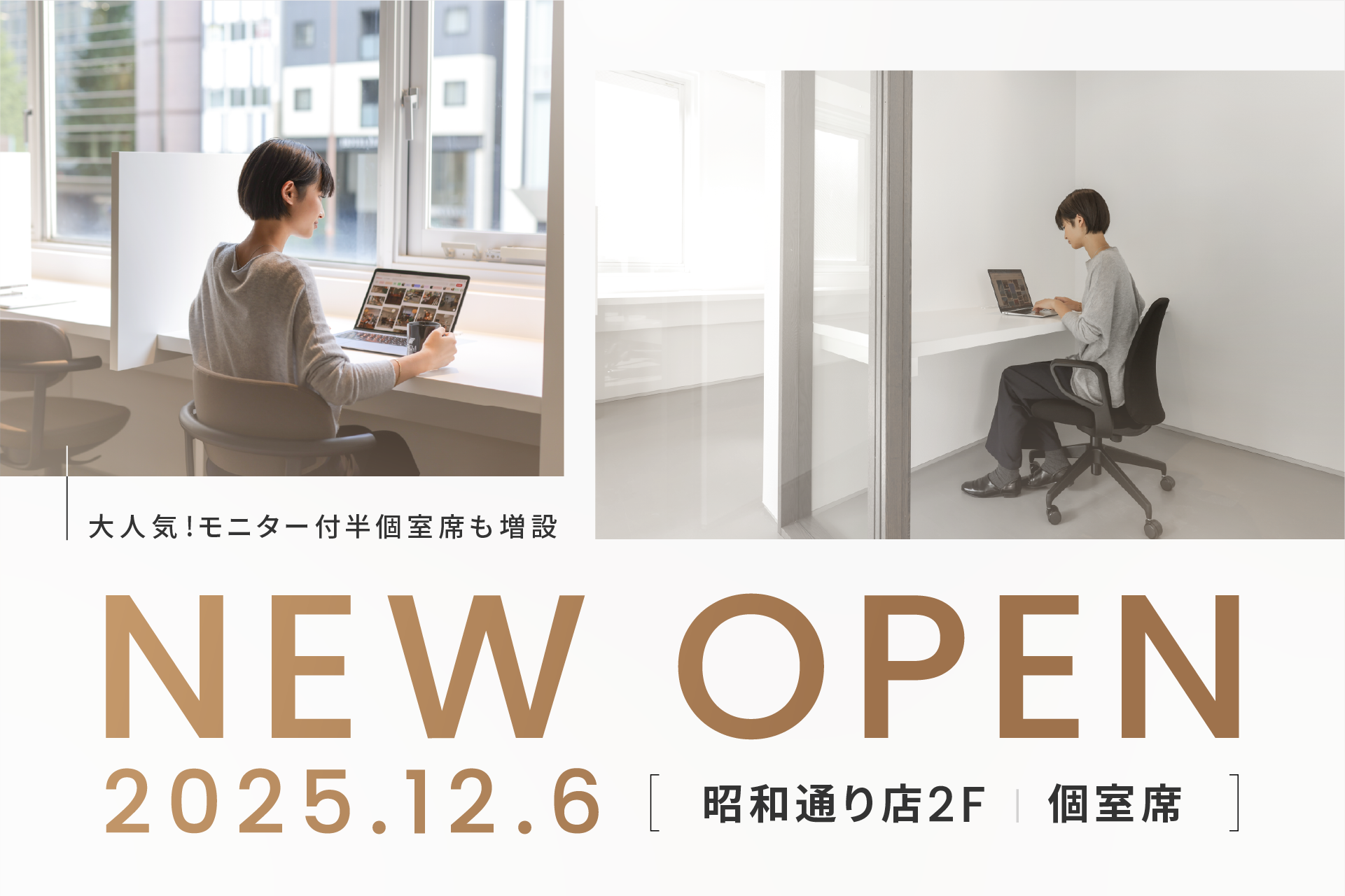 昭和通り店2Fのオープンを記念して、個室利用を始めやすくする特別なキャンペーンをご用意しました。初めての方から、フリーランス、スタートアップ、これから起業しようと考えている方まで、さまざまな働き方にフィットするお得な内容です。個室の1日無料体験