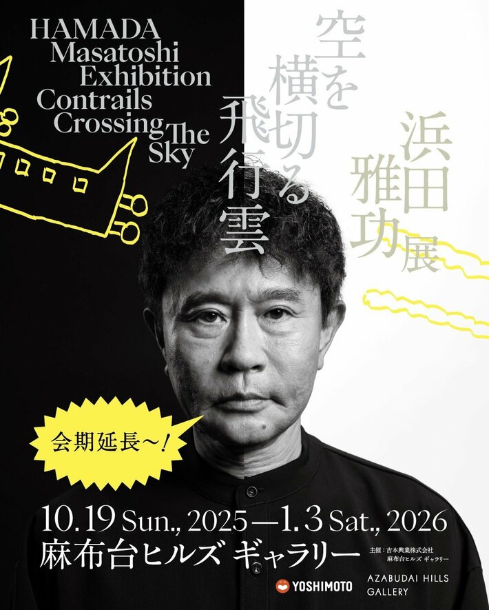 2025年10月19日(日)より麻布台ヒルズ ギャラリーにて好評開催中の、浜田雅功による初の個展、浜田雅功展「空を横切る飛行雲」は、当初予定の2025年12月21日(日)から、年末年始をはさむ2026年1月3日(土)まで会期を延長することが決定しました。