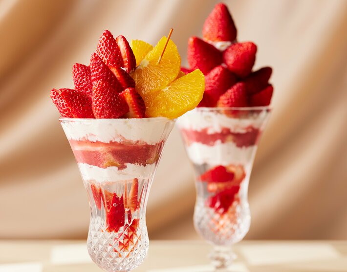 旬果実に愛媛県産のみかん「紅まどんな」を入荷します。愛媛県は、なだらかな山に降り注ぐ太陽と、潮風がもたらすミネラル分など、豊かな自然にあふれ、甘くてジューシーなみかんが育ちます。「紅まどんな」は、愛媛県だけで栽培される果汁たっぷりのみかんで、皮が薄く柔らかな実は、まるでゼリーのような食感です。今年は「紅まどんな」と「こだわり苺」を合わせたパフェに仕立てました。2種類の旬果実が織りなす贅沢なデザートを是非お楽しみください。■カフェ(イートイン)