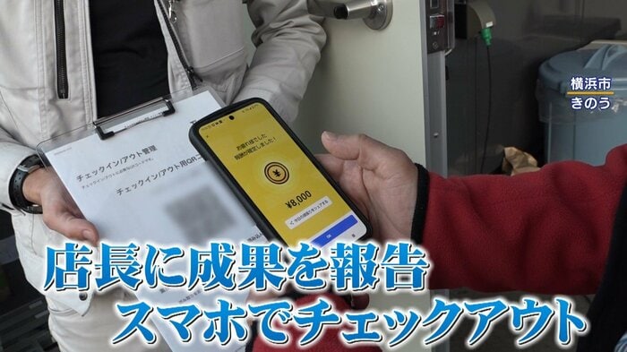 その日の業務を終えると店長に成果を報告し、スマホでチェックアウト。この日の収入は7時間の勤務で8000円でした。