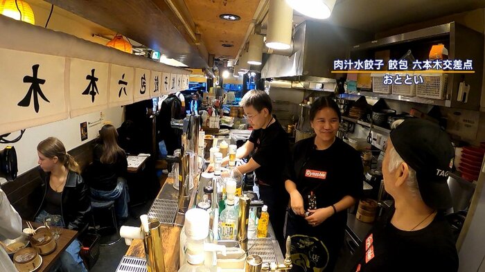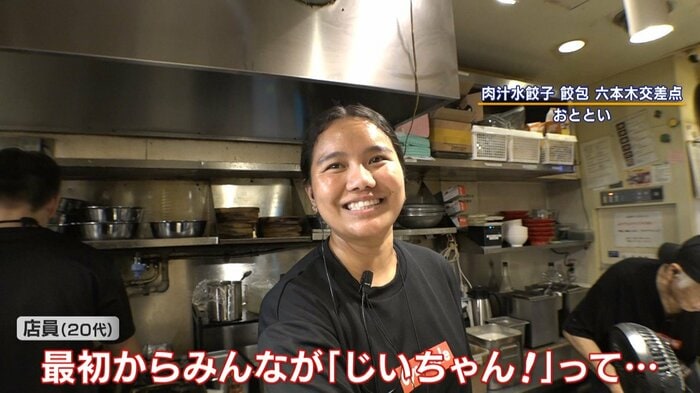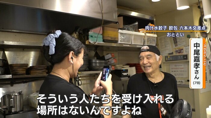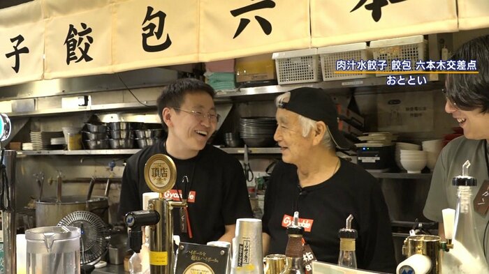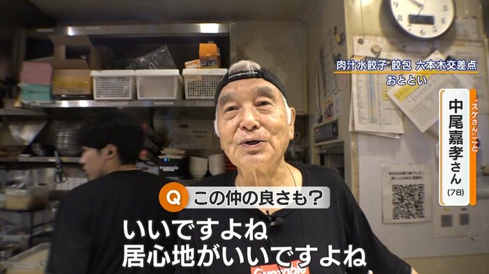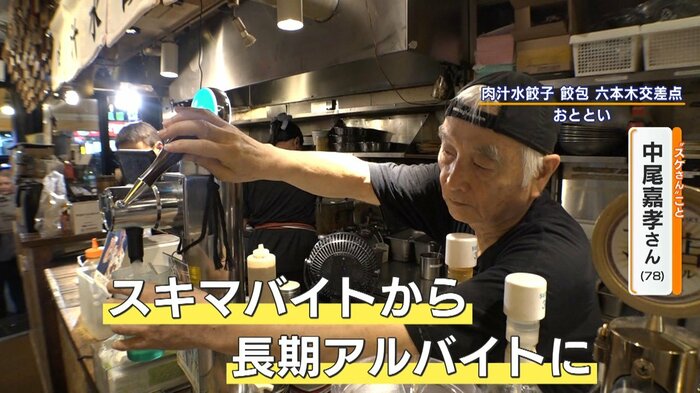 東京・六本木にある水ギョーザの専門店「肉汁水餃子 餃包 六本木交差点」で働く、中尾嘉孝さん(78)。