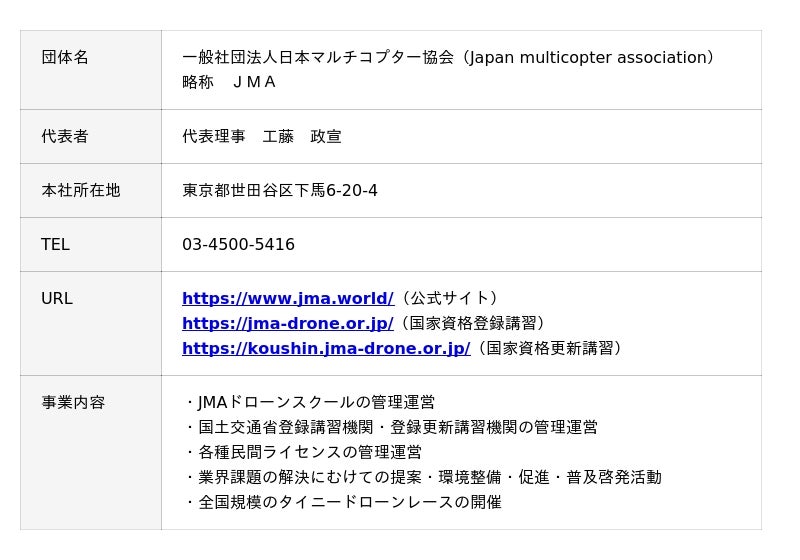 【JMA(一般社団法人日本マルチコプター協会)について】