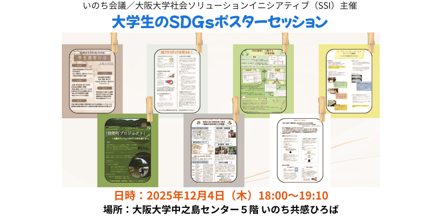 いのち会議は、大阪大学社会ソリューションイニシアティブ(SSI)との共催で12/4午後にグランキューブ大阪で開催される 「OU-SDGsプログラムシンポジウム」(13:00~17:00)に合わせ、学生のSDGs達成に向けた取組の発表会を開催いたします。