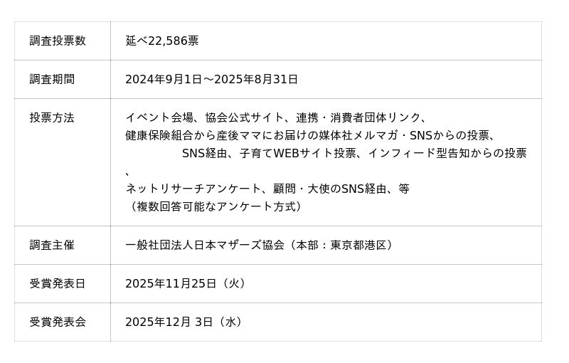 株式会社 明治(代表取締役社長:八尾 文二郎)は、乳児用調製乳「明治ほほえみ」において、この度、一般社団法人日本マザーズ協会(会長:森松 和子)が主催する第17回 マザーズセレクションにて「マザーズセレクション大賞2025」を受賞しました。
