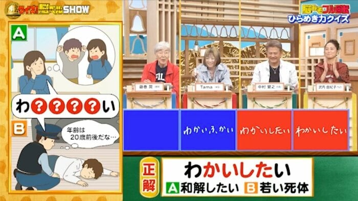 正解は「わかいしたい(和解したい/若い死体)」。