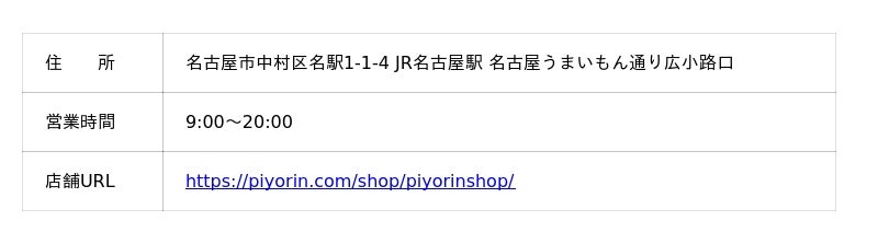■ぴよりんshop アトリエ店に加え、名古屋駅のぴよりんshopでも購入可能