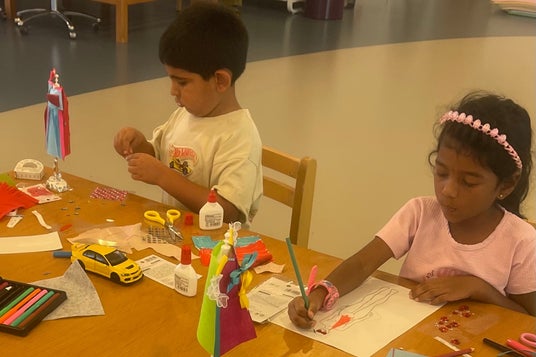 当日は、ドバイ特有の多文化環境の中、年齢も文化的背景も異なる子どもたちが、同じ空間で制作に取り組みました。